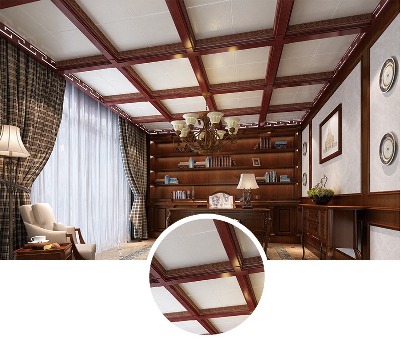 橫梁架構(gòu)交錯(cuò)衍生的吊頂下是大大的落地窗